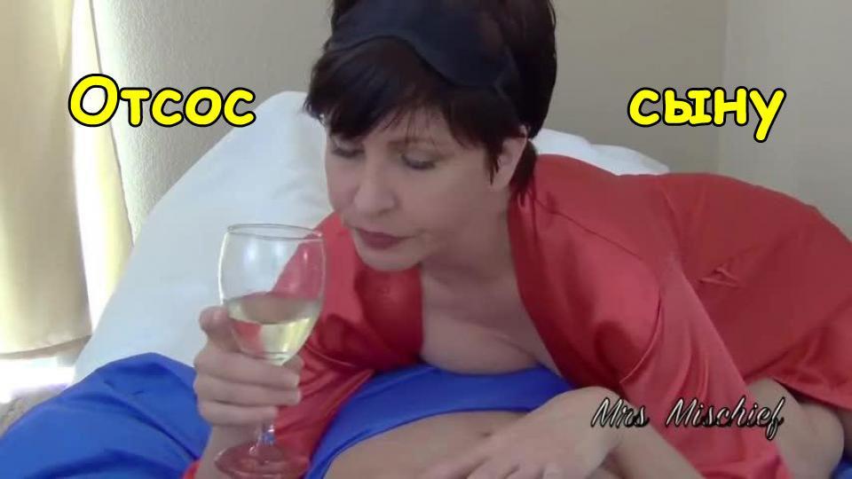 Мать выпила игристое, и оно дало ей в голову. Всего после одного бокала мать опьянела и ей захотелось непристойностей с сыном. Она закрыла глаза и открыла рот. Так мать после игристого стала делать минет сыну и отсосала ему член. А потом она прерывается, чтобы сделать еще пару глотков игристого, чтобы продолжить сосать сыну.